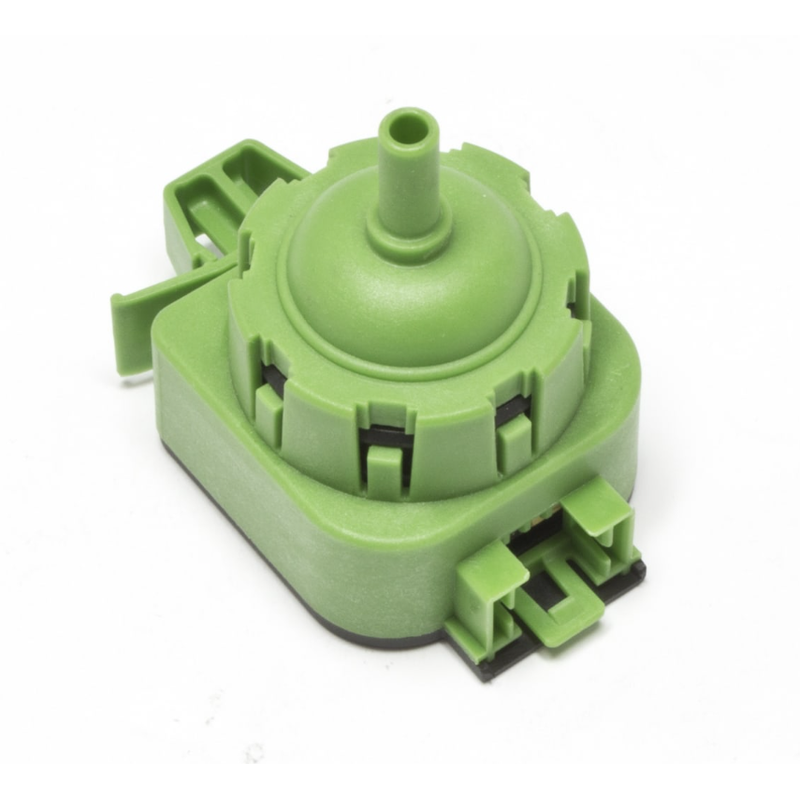Presostat analog për lavatriçe që shërben për të kontrolluar nivelin dhe presionin e ujit gjatë funksionimit të pajisjes. Ky komponent monitoron presionin e ajrit nga tubi i nivelit të ujit dhe dërgon sinjale në sistemin elektronik për të rregulluar mbushjen dhe ndalimin e ujit gjatë ciklit të larjes.
